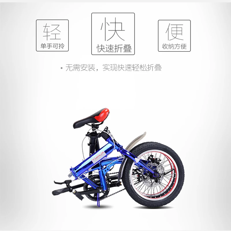 Children's folding bicycle adult men and women 16 inch student variable speed bicycle saddle higher than 635MM